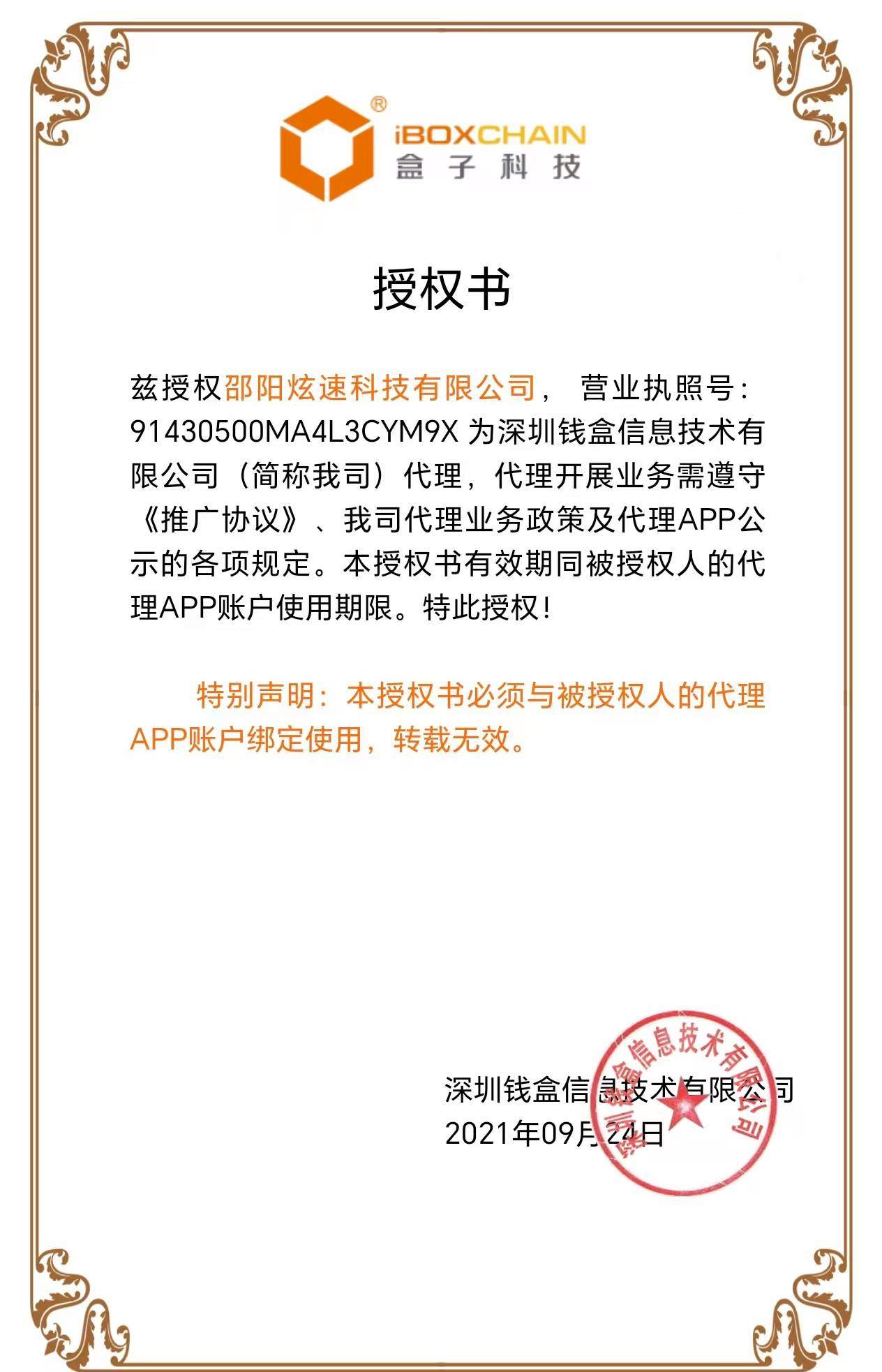 盒子支付-授權證書